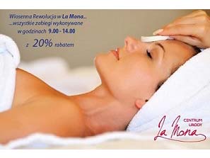 Centrum Urody La Mona, fryzury i makijażeW Centrum Urody La Mona proponujemy szeroką gamę zabiegów odmładzających skórę, poprawiających samopoczucie, upiększających oraz relaksacyjnych. Przeprowadzane są one na sprawdzonych i bezpiecznych kosmetykach, w oparciu o nowoczesne rozwiązania technologiczne.